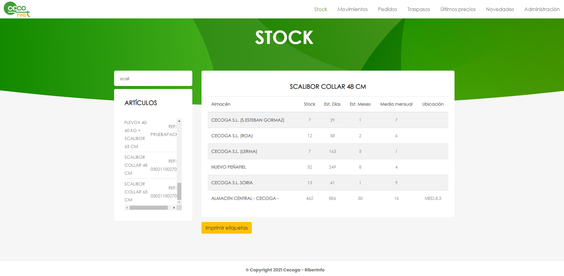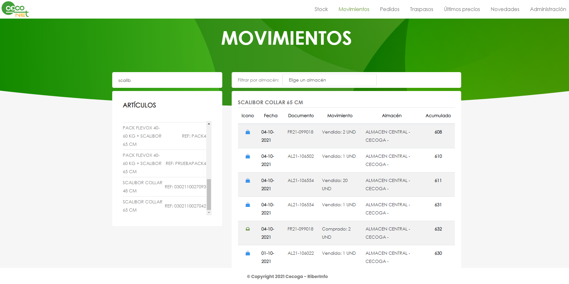 Sección muy dinámica que permite consultar todos los movimientos de un producto a simple vista.Al igual que ocurre con la sección de Stock, la aplicación está planteada para que su utilización se realice de izquierda derecha.(Esta sección está pendiente de la creación de más filtros...